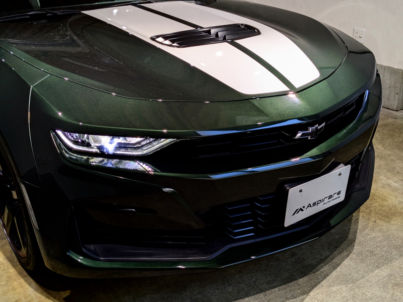外装は、カタログモデルにはない、1960年代に初代カマロで採用されたラリーグリーンをモチーフにし、