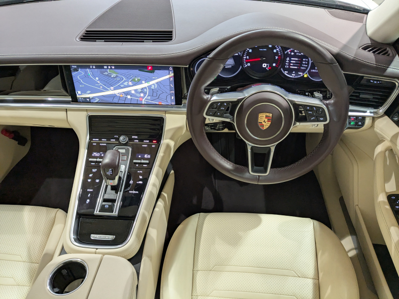 ポルシェ パナメーラ 3.0 V6 パノラマサンルーフ ホワイトレザーインテリア ブラウンレザー 4ゾーンエアコン アダプティブクルーズコントロール LCA LKA 21インチAW エントリーD 全方位カメラ