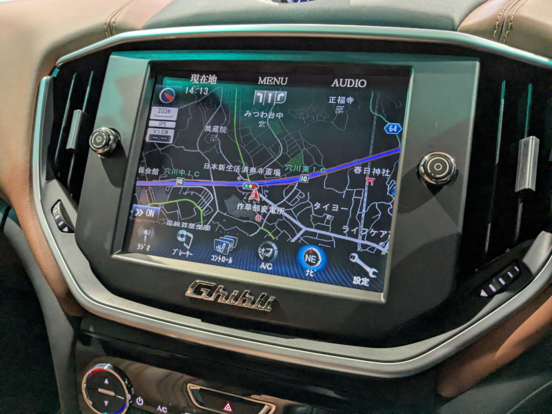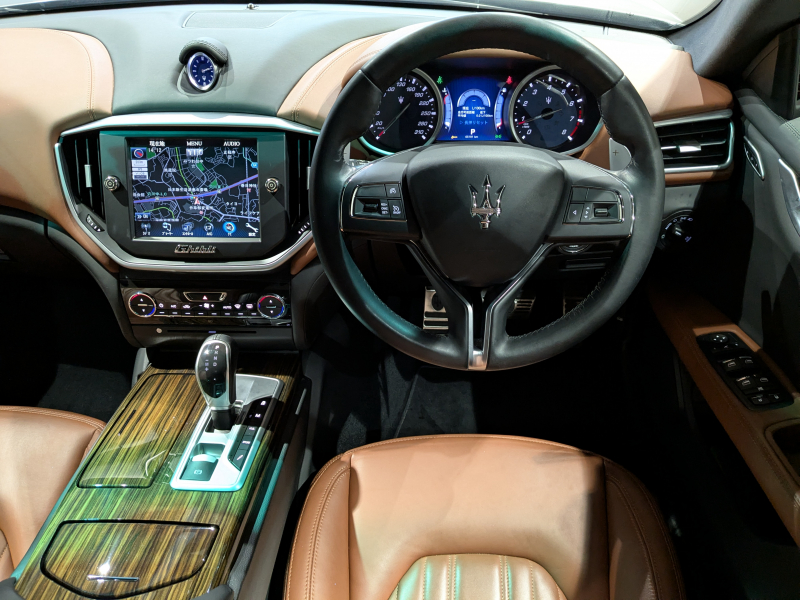 マセラティ ギブリ 3.0 V6 スカイフックサスペンション ウラーノ20インチアルミホイール ブラウンレザーシート サンルーフ シートヒーター カーナビ リアカメラ